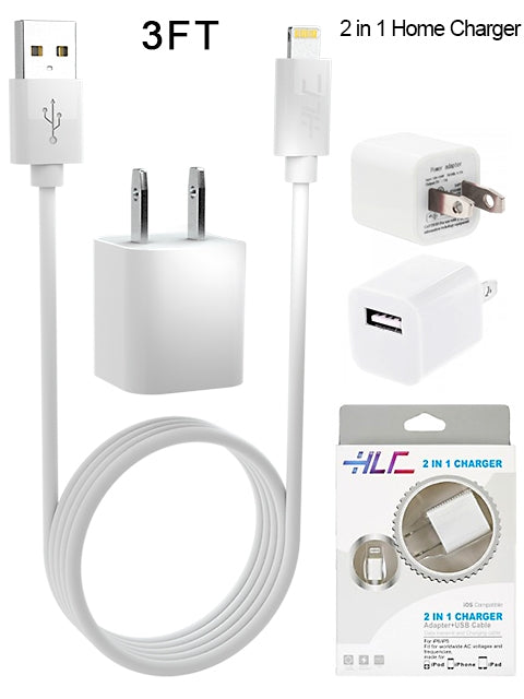2 in 1 Home Charger Compatible with Apple iPhone XM/XR/X/8/7/6/5