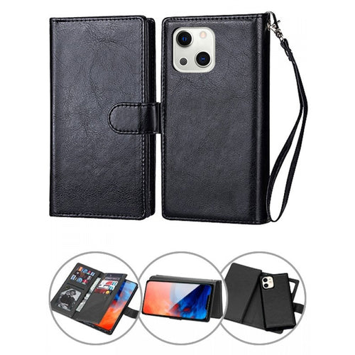 iPhone 13 2 in 1 Leather Wallet Case With 9 Credit Card Slots and Removable Back Cover