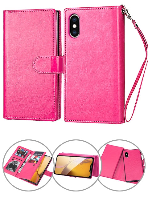 iPhone X/Xs 2 in 1 Leather Wallet Case With 9 Credit Card Slots and Removable Back Cover