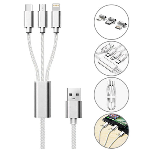 3 in 1 Multi Charging USB Nylon Cable Compatible with Most Smart Phones & Pads (3FT)