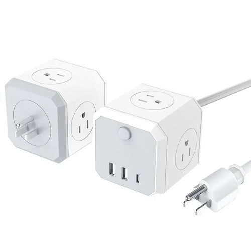 3 USB Ports 4-Sided Socket Wired Power Fast Charge Adapter-White