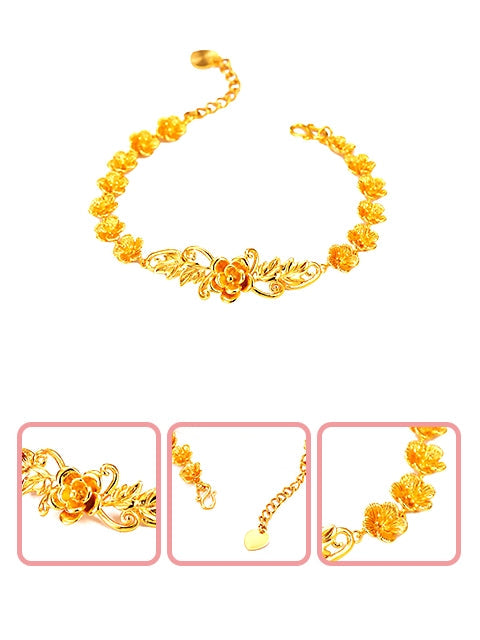 • This adjustable bracelet is punctuated by a beautiful rose symbol, embellished with gold to make it truly eye-catching.