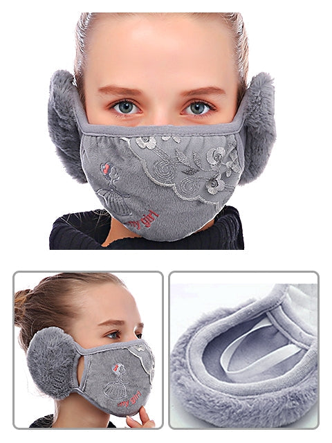 Autumn Winter Warm Plush Face Mask For Women - Gray