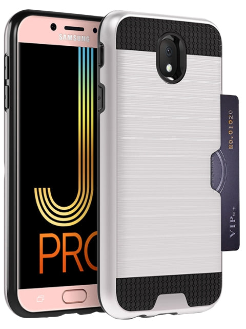 Slidable Card Holder case Compatible with Samsung Galaxy J7 (2018)- Silver