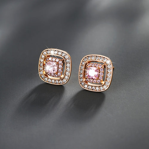 Geometric square style with slightly inlaid zirconium earrings(X000641230)-Gold