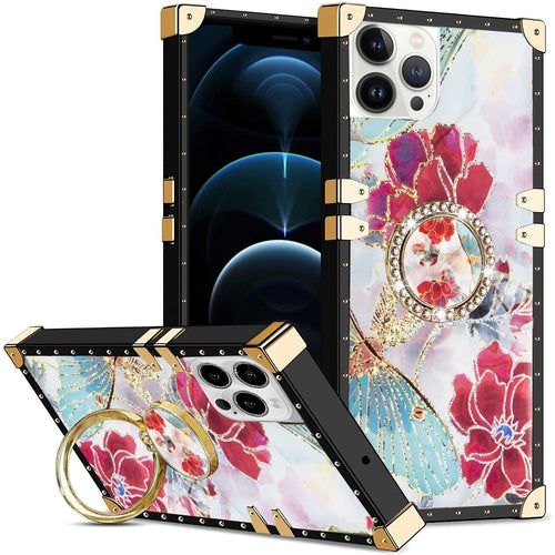 iPhone 14 Pro Max TPU Luxury Pink Flower Case with Kickstan