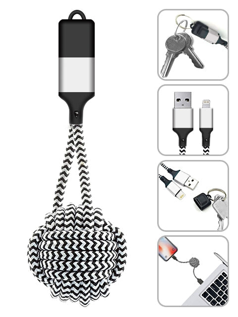 Key Cable USB-C to Lightning - Durable Lightning to USB Charging Cable with Key Fob for iPhone/iPad - White / Black