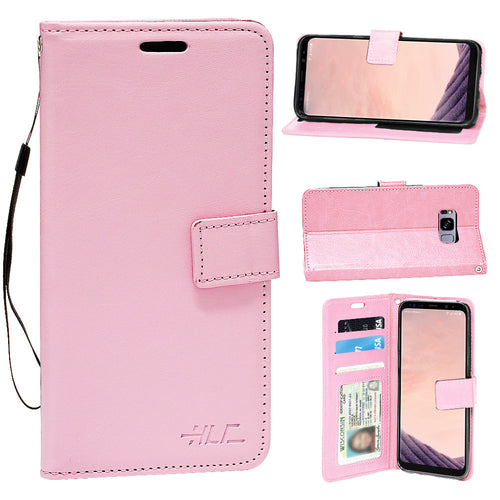 Real Plain Leather Wallet Case for Galaxy S8 Plus -Pink