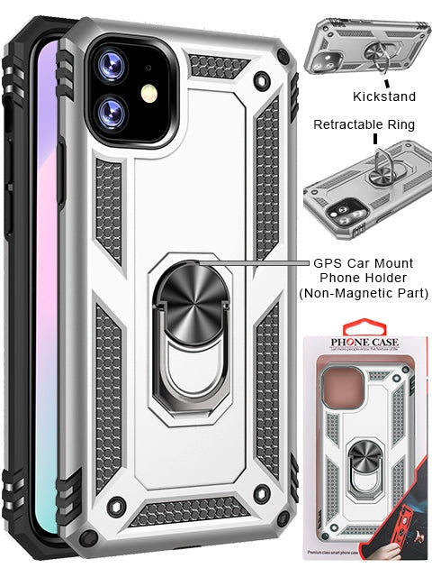 - 360 degrees rotating ring doubles as a ring holder or a kickstand. It can be rotated and swiveled for a hands-free viewing experience. With the integrated metal plate, the strong magnetic car mount makes great contact with your iPhone 11 and prevents slipping during bumpy rides.