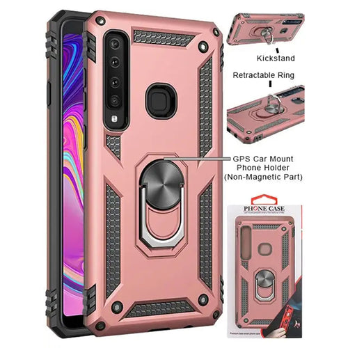 • 360 degrees rotating ring doubles as a ring holder or a kickstand. It can be rotated and swiveled for a hands-free viewing experience. With the integrated metal plate, the strong magnetic car mount makes great contact with your Samsung Galaxy A9 and prevents slipping during bumpy rides.