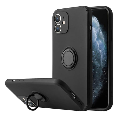 Soft Liquid Silicone Case With Stand Ring Holder For iPhone 12 (6.1") - Black
