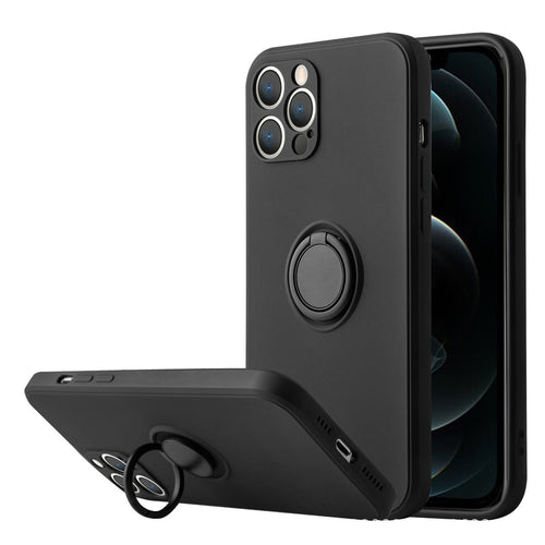 Soft Liquid Silicone Case With Stand Ring Holder For iPhone 12Pro Max (6.7")