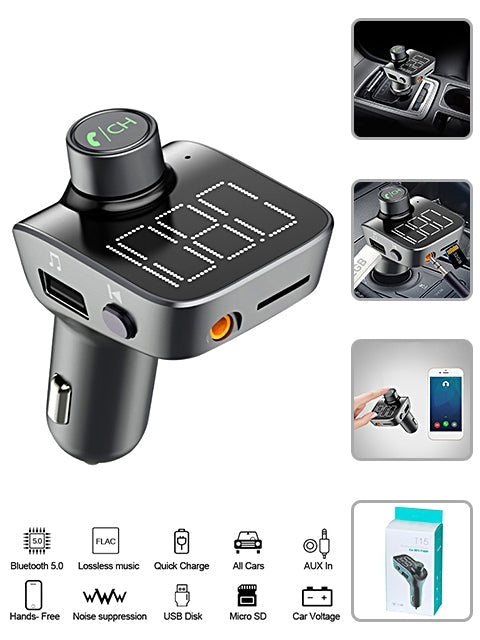 - Transmit the music/navigation of your Bluetooth enabled smart device to car stereo via FM signal.