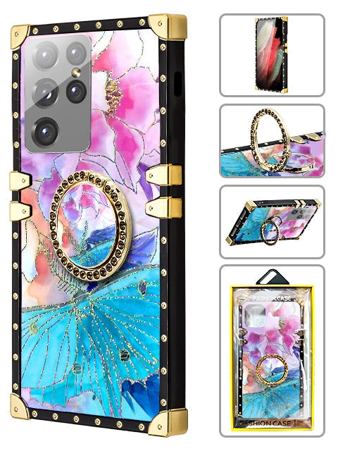TPU Luxury Shiny Flower Fashion Case with Kickstand for Samsung Galaxy S21 Ultra (6.8") - Pink