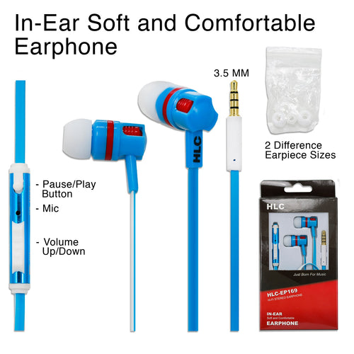 Universal Hi-fi Stereo Earphone with Volume Control - Blue
