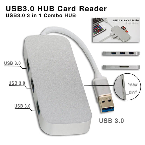 5 in 1 USB 3.0 HUB Card Reader for PC & Mac - Silver