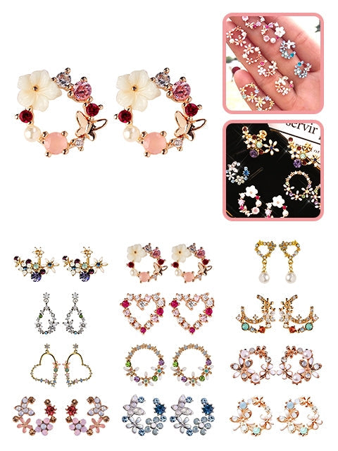 A Dozen of Flower Stud Earrings for Women Girls Cute Wreath Garland Earrings