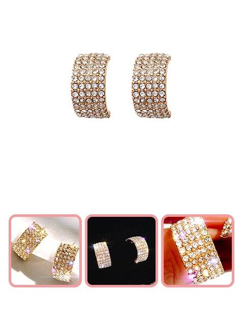 • Round shape earrings, inlaid with clear rhinestones, shining under the light or the sun. Make you more dazzling.