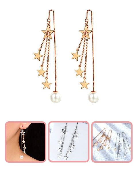 A Dozen of Luxury Faux Pearl & Star Style Dangle Earrings (W74)