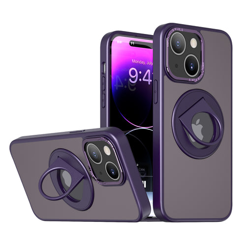 iPhone 15 Plus Hollow Out Ring Rotating Magnetic Suction Bracket Protective Sleeve Case