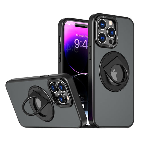 iPhone 15 Pro Hollow Out Ring Rotating Magnetic Suction Bracket Protective Sleeve Case