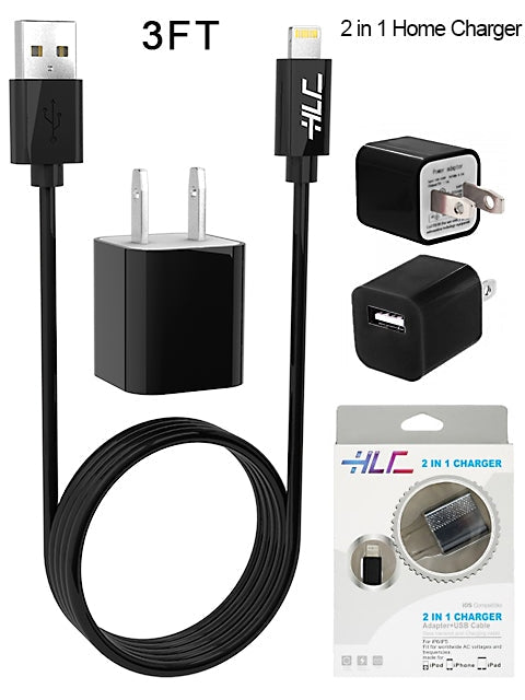 • 2-in-1 Home Charger for Apple iPhone Xs Max/XR/XS, 8/7/6/Plus, iPhone 8/7/6 iPhone5S/5C/SE compatible with all iOS lightening version