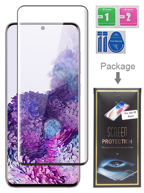 Black 1PCS 3D Super Glue Curved Tempered Glass for Galaxy S20 FE With Fingerprint Sensor