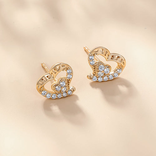 European and American minimalist geometric metal earrings(ER-P018)-Double Heart