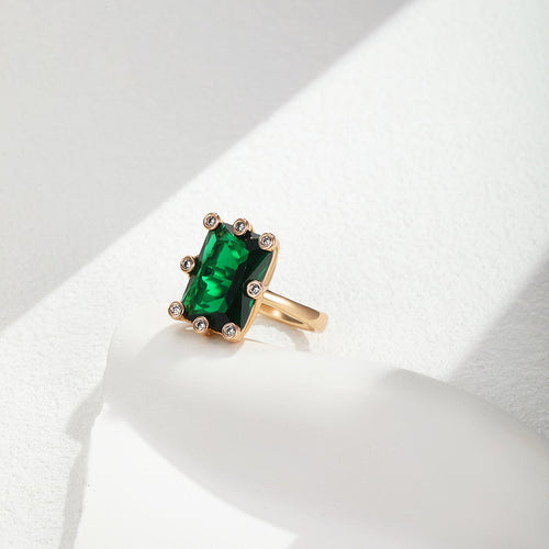 Fashionable Colorful Treasure Series Square Ring with Retro Light Luxury and Small Crowd Design High Level Sense(X000662429A11)-green