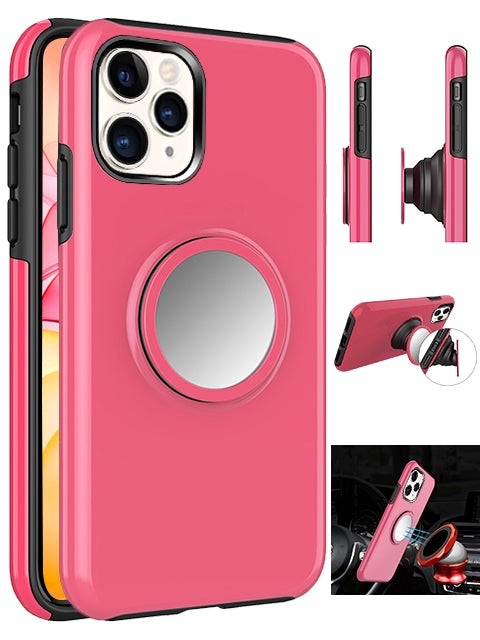 Hybrid Rubber Case with Coiled Circle Magnetic Kickstand GPS Holder for iPhone 11 Pro Max