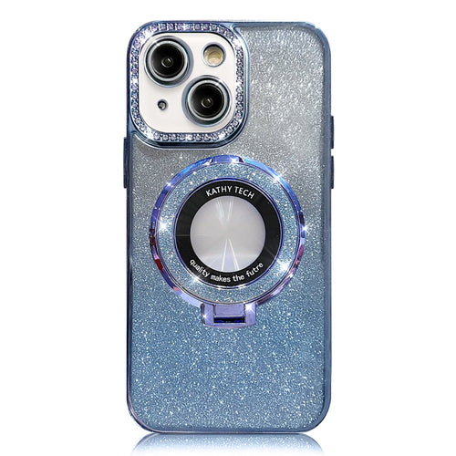 iPhone 15 Plus Electroplated Magnetic Adsorption Slim Holographic Paper TPU Holder Case