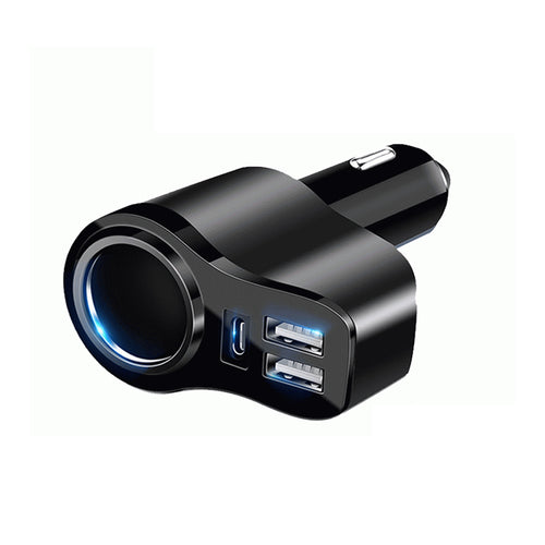 3 Ports (2USB 3.0+Type C ) Car Adapter with iGnition Port for iPhone 13/12/11 and other Devices - Black