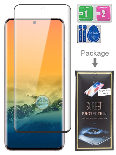 Black 1PCS 3D Super Glue Curved Tempered Glass for Galaxy S21 Ultra With Fingerprint Sensor