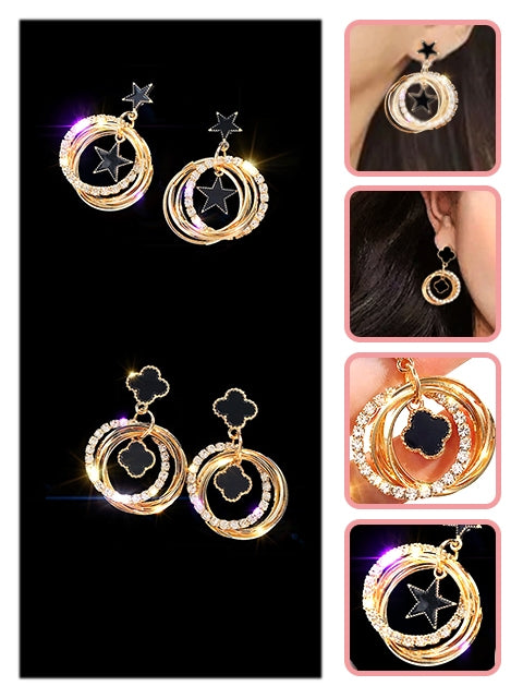 - Classical multiple gold round hoops tied with extreme sparkle crystal make earrings not only the simple decoration but also your attitude to fashion.