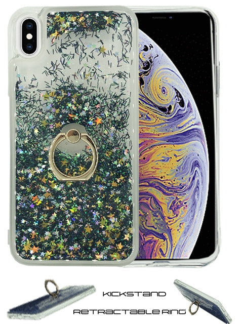 Floating Glitter Star Ring Phone Holder Case for iPhone Xs Max-Black