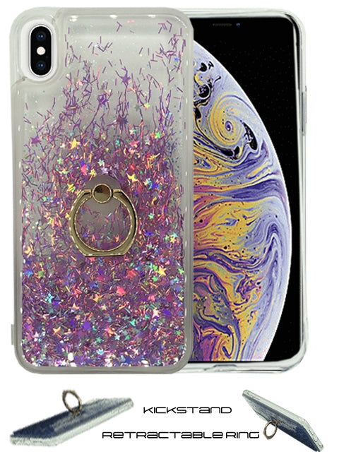 Floating Glitter Star Ring Phone Holder Case for iPhone Xs Max-Light Purple