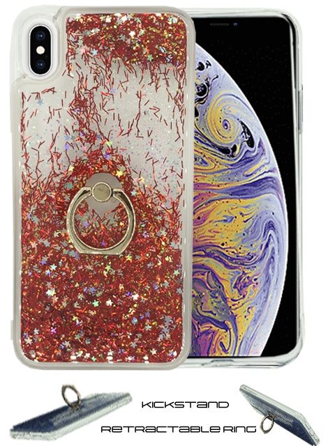 Floating Glitter Star Ring Phone Holder Case for iPhone Xs Max-Red