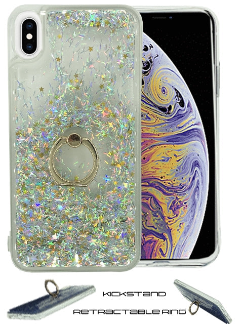 Floating Glitter Star Ring Phone Holder Case for iPhone Xs Max-Silver