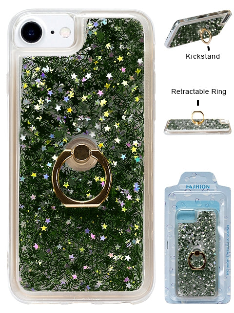 Floating Glitter Star Ring Phone Holder Case Compatible with Apple iPhone 8/7/6/SE2 - Dark Green