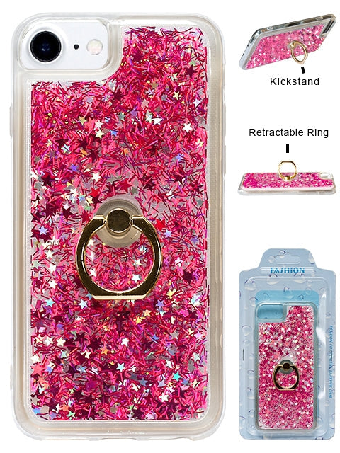 Floating Glitter Star Ring Phone Holder Case Compatible with Apple iPhone 8/7/6/SE2 -Hot Pink