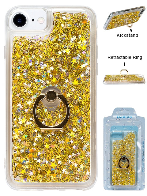Floating Glitter Star Ring Phone Holder Case Compatible with Apple iPhone 8/7/6/SE2 - Yellow