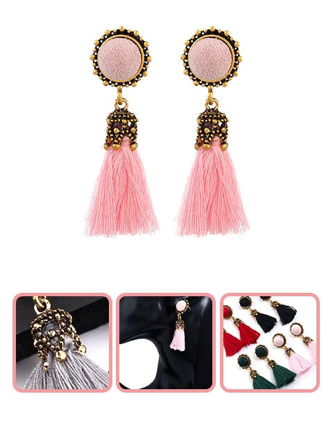 - Our latest Tassel earrings designs with striking woven rattan pearls feather fringe acrylic circle disc teardrop rhombus pendants with chic gold-effect alloy straw knit studs fashion charming classic vintage stylish.