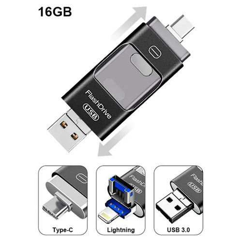 3 in1(Type C & Lightning & USB3.0) i Flash Drive for Apple iOS & Android & Computers (16GB)